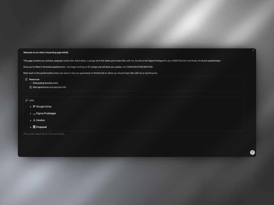 💻 It’s built for designers, developers, copywriters, and creatives who want to deliver a clean, organized client experience without spending hours setting up clunky systems.
